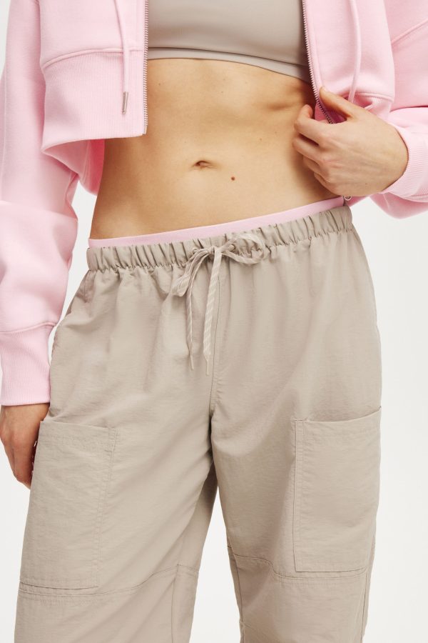 - Functional draw cord with stripe detail