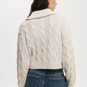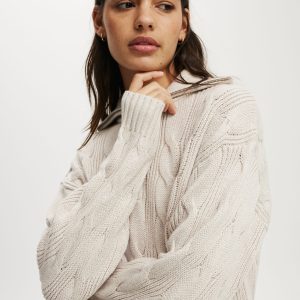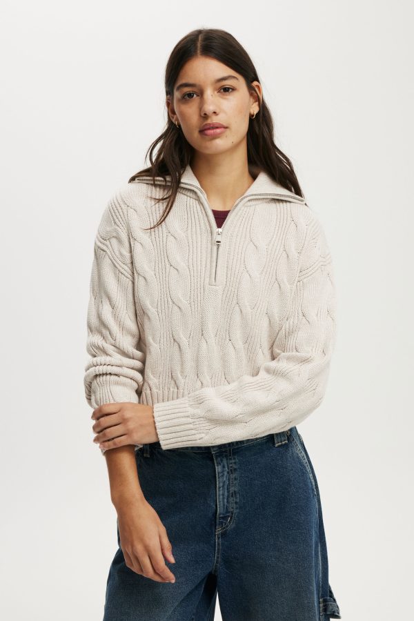 Cotton Cable Half Zip Pullover