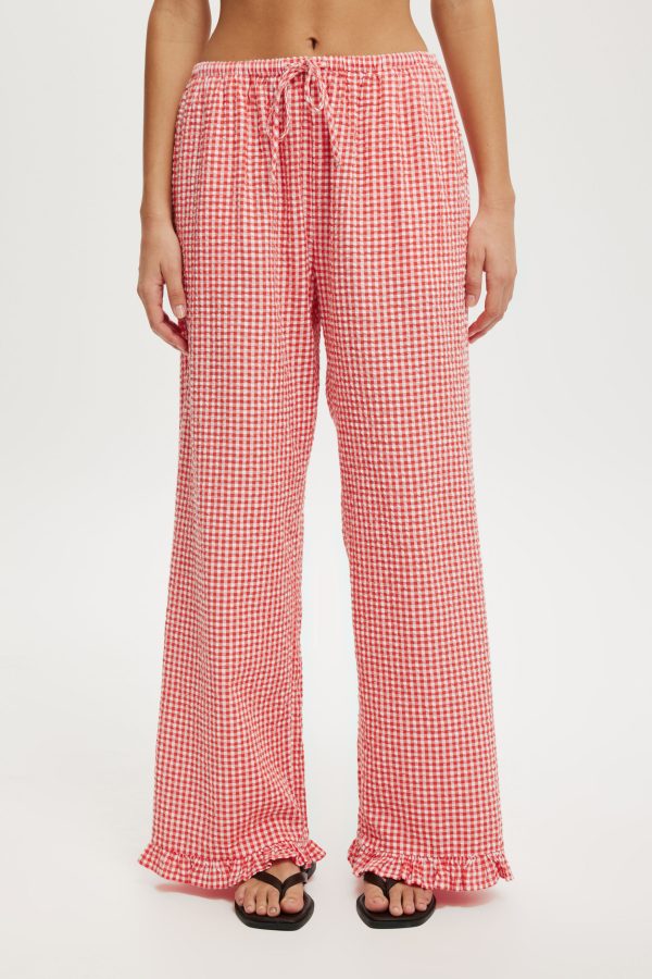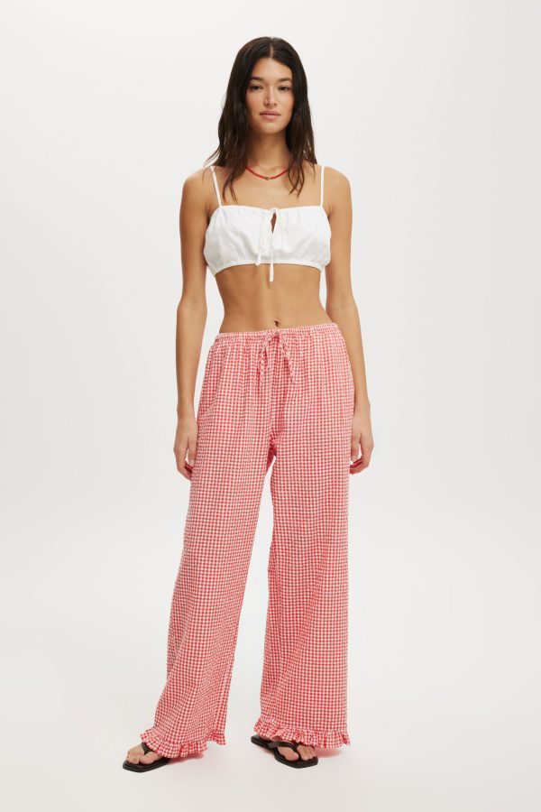 - Wide elastic waistband with draw cord-Frill detailing on leg hem