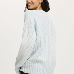 Main: 69% Acrylic, 28% Polyester, 3% Elastane.